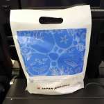 1回めの食事のあと、すぐに朝食用に浅野屋のペイストリー「ふんわりブルーベリーミルク」と「午後の紅茶 ストレートティー」が渡されました。好みの時間に朝食が摂れるシステムはハワイ線あるある。こちらも馴染みのきゅっと絞るタイプのバッグから、100%植物由来のカネカ生分解性バイオポリマー・Green Planetを使った袋となっていました。