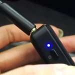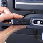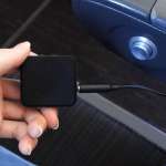 次に手持ちのBTイヤホンをペアリングモードにし、本体のスイッチを“送信モード”にスライド。電源ボタンを5秒以上押し青色LEDが点滅後、しばらくするとペアリングが完了します。なお、この作業は1m以内で行います。とは言っても座席で設定するため、そのあたりは特に問題なし。