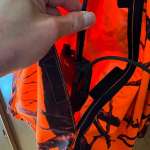 ジッパーで固定されている背面収納は取り外すこともできます。使う必要のない人や、有害鳥獣駆除で秋冬以外の季節に使う時に良さそうです。たくさん山を歩く勢子役の人には最適の仕様だと思います。