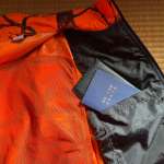 背中には取り外し可能な収納ポケットが付いています。開閉は面ファスナー。脱いだジャケットやレインウエアが充分に入るサイズです。私はここに無線機を入れています。とにかくいろいろ入って便利です。