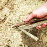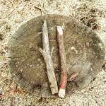 上記の写真のように枝2本用意します。なるべく真っ直ぐで同じくらいのサイズが良いです。この写真の枝の太さは指2本分くらいありますが、指1本分くらいの太さを用意するとベストだと思います。