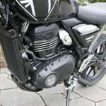 最高出力は40PSを8000rpmで発揮。最大トルクは37.5 Nm/6500rpmとなかなかのハイスペックです。それでいて、直立したシリンダーには空冷を思わせる大きめのフィンが刻まれており、クラシカルなルックスも作り出しています。