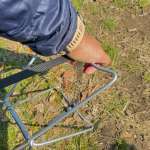 フレームを開きます。両側に脚と座面をつなぐウェビングがついているので、開きすぎたり、脚が交差してどっちがどっちなのかわからなくなったり、なんてことはありません。