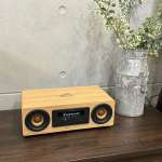 実機を前にしてみると、“ウッドコーンスピーカー”だけでないウッドらしさに心惹かれます。デザインは、木目調でフラット&ローデザインのナチュラル志向ですね。