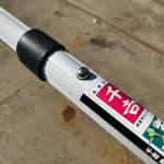 金属のボタンを押すとスプリング式のロックが外れ、前方の柄が伸び縮みします。ハンドルと柄のジョイントはしっかりとしており、土がハンドルに入ることはありません。また、ハンドルは楕円形なので握りやすく、力が入れやすい。