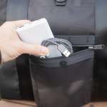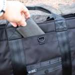 「URBAN TOTE」の一番の特徴は、シューズなどを独立して収納できるサイドポケット。3辺が開く設計になっているためスムーズに中身の出し入れができます。