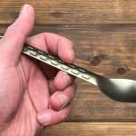 アルミ製のスプーンとスフォークにはアルマイトの表面処理が施されています。今回購入したのはフラットセージというカラーリング。メタル感のあるオリーブドラブといった感じです。他にもオニキスとブロンズの二種類があります。アルマイトなので腐食防止がメインですが、仕上がりが美しくアルミ製カトラリー特有の安っぽさが無いのが素敵です。