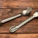 収納時にすんなりと纏まるので使っていて気持ちがいい。これまでアウトドアでは、樹脂製のカトラリーを使っていましたが、アルミは樹脂の1000倍以上の熱伝導率があるので、スープやシチューを食べると暖かく美味しく食べられます。重さも樹脂製とあまり違いはないですし、洗った時の油や汚れの落ち具合もこちらの方が断然良いと感じました。