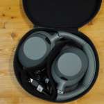 ▲重低音ヘッドホンとしては落ち着いたデザインの「WH-ULT900N」。今回の実機はフォレストグレイのカラー