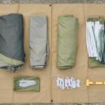 ▲左からフライ、インナー、ルーフフライ、ポールとキャノピーポール。ペグ、ロープ、ハンマーも付属