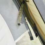 天井部分はルーフフライを装着することでより雨や日差しから室内を守る構造。そして何よりこのルーフフライが「トンネルシェルター/240」の一番の特徴。なんとテント本体との固定は長~い面ファスナー(マジックテープ)のみ。フックと部分的な面ファスナーでセットアップするテントが多い中で、なんとユニークなことか。