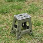 座面がワイドな分、収納サイズは大きめ。とはいえ片手で持てるしチェアと比べても十分コンパクト。耐荷重は100kgと申し分ありません。