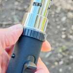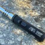 点火ボタンをロックできればもっと使いやすくなりそうですが、「ポータブルスティックバーナー」の連続使用時間は10秒で、それ以上点火し続けると破損の危険があるそう。