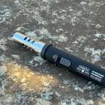 セーフティボタンを解除したら、火口を対象物に向けて点火ボタンをスライド。たったこれだけでボーッという燃焼音とともに青い炎が噴出します。