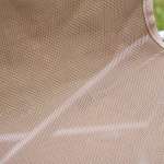 生地はすべてポリエステルメッシュ。真夏でも蒸れにくいし、水遊びやサウナのあとも気にせずドッカリ座れます。メッシュ生地は伸びそうなイメージですが、このチェアは張りをキープしているのもうれしいですね。
