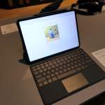 同モデルの最大の利点は拡張性。純正アクセサリーとしてタッチパッド付きのキーボード(1万6800円)、高性能な「フォーカスペン」(1万4800円)などが用意されており、これ1台でノートPCのように使えて、お絵描きなども楽しめます。落書き程度の絵をAIでプロが描いたような絵に変える「AIアート」という機能があり、発表会後のタッチ&トライで、取材陣から注目を集めていました。