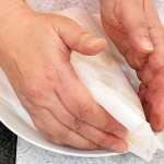 新屋さんによれば、この巻き上げ、多少のズレが出たとしても最後にキッチンペーパーなどで綺麗に整えれば良いとのこと。なるほど、このやり方を事前に知っておけば、巻く際に慌てなくて済みますね。