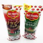 ▲「デルモンテ リコピンリッチ トマトケチャップ」(左)と「デルモンテ トマトケチャップ」(右)。「デルモンテ リコピンリッチ トマトケチャップ」の濃厚な味わいは色にも表れています