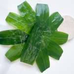▲「笹」の葉脈の硬いところを上にし、時計回りに並べていきます