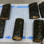 ▲最初にプードルの耳と口元の部分の巻き寿司を作ります。これがパーツになります
