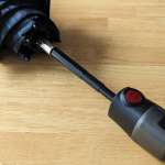 従来の自動開閉式は、シャフトを縮める際、最後まで縮めきらないと「びよん!」と元の長さに戻ってしまう機構になっていました。しかも縮めるためにはかなりの力が必要。これが難点だったのですが、③縮める途中で止めても大丈夫なのは、本当にラクです。