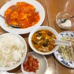 肝心の味は少々辛めの味付けながら、10個ほど入った海老はプリプリ。ご飯がどんどん進みます。添え物のキムチやサラダ、そしてスープの酸辣湯も絶品で、シメにいただく杏仁豆腐までついてこの味・コスパは確かにかなりお得。マッサージ店のお兄さんが絶賛する理由もよくわかりました。