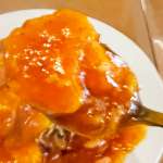ここで「海老のチリソース定食」をオーダー。繁忙時間帯であることからサーブまでなんと30分かかったのはご愛嬌。しかし、そのビジュアルを前にとにかくテンションが高まりました。