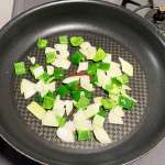 ▲甘味と青っぽさを期待して玉ねぎとピーマンを炒めて和えることに!