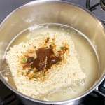 ▲「台湾香辣牛肉湯麺」を鍋に入れ煮込んでいるところ
