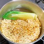 ▲麺と一緒にチンゲン菜を入れて煮込みました