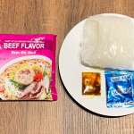 というわけでさっそくパッケージを開封してみました。しっかり梱包された米麺とスープ、香味油が入っています。米麺は見るからに硬そうですが、調理時間は意外と早く、400mlほどの水を鍋に入れ、沸騰させた後に米麺をイン。2分ほど茹でたところで、スープ、香味油を入れれば完成です。