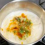 ▲鍋で米麺を茹で終わり、スープ、香味油を加えたところ