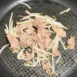 そのままでも十分美味しそうな「ブンボーフエ」ですが、せっかくなのでトッピングもしたく、牛肉ともやしを別途炒めのせていただくことにしました。
