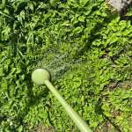 液体タイプのデメリットは効果期間が短く持続性がない点です。逆に顆粒タイプは持続性に優れ、半年に一度の散布で済みます。今回のターゲットは一年草やスギナになります。スギナは根を横に広げ、土から露出した部分を抜いてもすぐに再生する厄介な雑草です。そこで散布は、スギナに効く濃度にして行いました。
