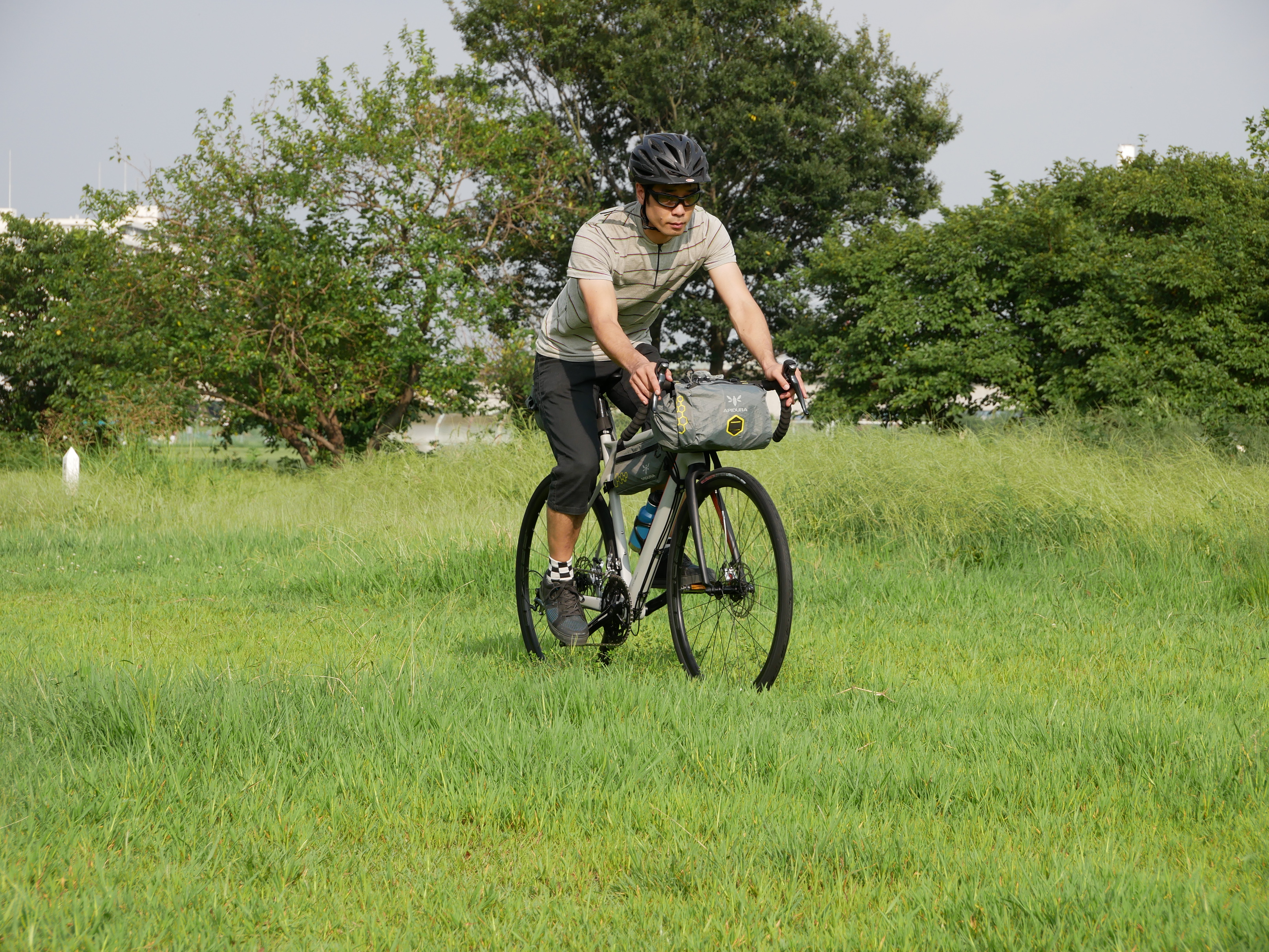 サドルバッグとハンドルバーバッグはロール式のクロージャーを採用しているので、容量に合わせてサイズを変えることが可能。テントやシュラフなどはここに入れるといいでしょう。