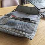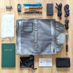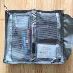 この構造を知った時に思いついたのが、左にはペン類&ノートの文具類、右にはガジェット系&予備名刺しようということ。