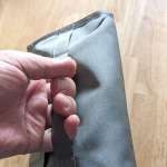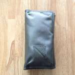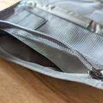 サイズは実測で、縦が約25cm、閉じた時の幅が約13cm。厚さは入れるモノ次第で変わりますが、今回小物を入れた状態だと約5.5cmといったところでした。小さくはないですね。