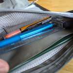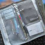 ただしひとつ問題があり、手持ちのノートが入らない。でも、よく考えてみると、最近の取材時はほぼPCでメモしているか、スマホで録音しているかで、ノートを使う機会はグッと減っています。だったら、このポーチのポケットサイズに合わせてノートを新調すればいいんじゃないかと。サイズから考えてコクヨの「測量野帳」なら余裕で収まりそうだったので、併せて購入しました。