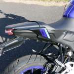 ライディングポジションは着座位置が前方になる「MT」シリーズらしいもの。シート高は810mmですが、車体が細くシートの前方が絞り込まれていることもあり、足付き性は良好です。アップタイプのハンドルなのでリラックスした乗車姿勢で乗れます。同じアップハンドルの「XSR125」よりもハンドルが近く、幅も狭いので体格が小さい人でも乗りやすそうです。オプションでシート高を28mm下げるローダウンリンクも用意されています。