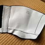 黒染めされた厚手の綿素材の布に、若干のフレキシブルさを持たせるためのゴム布とマジックテープが付いているだけのものです。