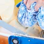 ⑤ガーゼまたは目の荒い布巾に打ち粉を含ませる。