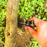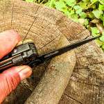 あとは、先ほどマルチツールで作った割れ目に楔を打ち込めば、小さいマルチツールでも薪が割ます!