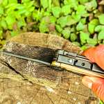 ナイフを完全に開いた状態でバトニングをしても持ち手の部分は薪に食い込みません。