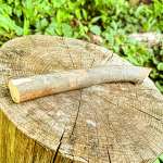 尖った方を先端として、反対側を綺麗にカットします。これはバトニングで叩きやすくするためのカットです。