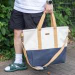 TPUコーティングを施したコットン・キャンバスを使用し、ボトム部分を撥水加工済みの生地で補強した、丈夫で耐水性のあるラージ・サイズのトート。