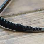 刃は先に向かって細くなり、先端部は鋭く尖っています。この鋭い先端が土によく刺さり、深く根を張った雑草を捕えます。刃の全長は約9cm。先端から小さな山谷が3個一組にあり、それらが4組配置されたギザギザの刃が、根を擦り切るように切断します。