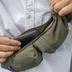 実は、三連ポケットの裏側にはさらにファスナー付きのポケットが設けられています。また、ななめ掛けタイプなので、背負ったままでも簡単に前に持ってくることができます。
