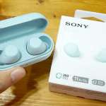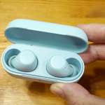 外見はポップな4色のカラー(写真はブルー)でコンパクト。ソニーの密閉型完全ワイヤレスイヤホン史上最小サイズで、体積は従来比約21%ダウン。重さはイヤホン片側で約4.6gと軽量です。
