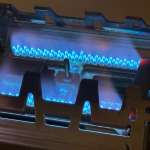 点火すると、青い炎が幅広のリボンのように立ち上がります。