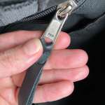 ▲滑らかなYKK製のファスナー。引き手は長めに設計されているため扱いやすい